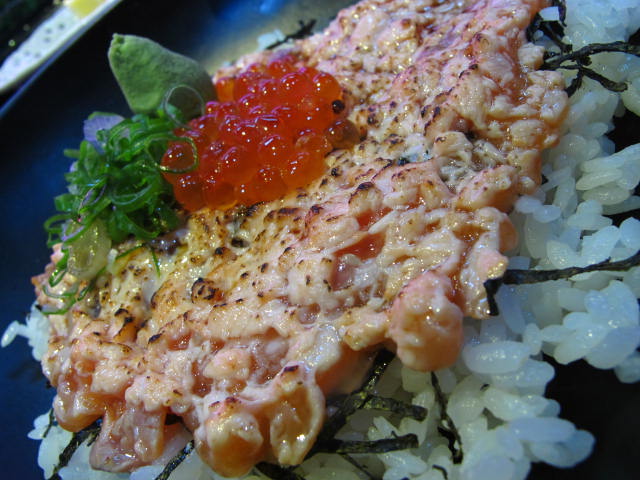 拿出來居然是我最愛的炙燒鮭魚肚,料理長把它剁得碎碎的還炙燒過,